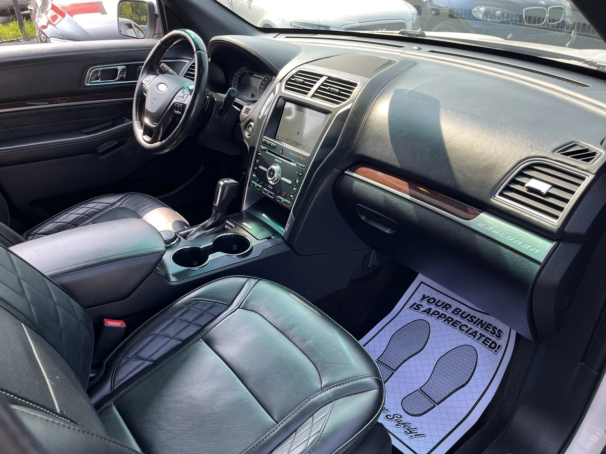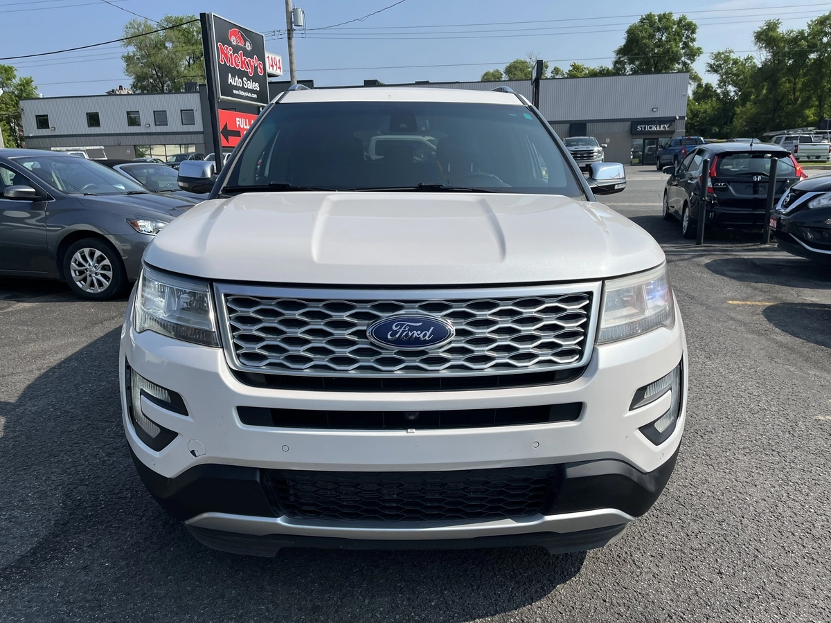 CHECK OUT THIS FRESH TRADE-IN FROM A LOCAL FORD STORE! 2017 FORD EXPLORER PLATINUM EDITION, 7 PASSENGER W/ 149,000KM! LOADED W/ ALLOY WHEELS, LEATHER SEATS, FRONT & REAR SUNROOF, MEMORY SEATS, PWR SEAT, PWR ADJUSTABLE STERING WHEEL, HEATED & COOLED SEATS, PWR TRUNK, PUSH TO START, NAVIGATION SYSTEM, REAR BACKUP CAMERA, PARKING SENSORS, MICROSOFT SYNC, AND MUCH MORE.. NO ACCIDENTS, CLEAN CARFAX HISTORY REPORT ON FILE!! CONTACT US TODAY TO SCHEDULE A VIEWING AND TEST DRIVE. OUR FRIENDLY SALES TEAM IS READY TO PROVIDE YOU WITH A SEAMLESS PURCHASING EXPERIENCE. FINANCING OPTIONS AVAILABLE. TRADE-INS WELCOME. PRICE + HST & LICENSING FEE. INCLUDES ONTARIO SAFETY STANDARDS INSPECTION & CERTIFICATE.